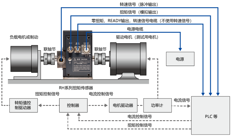 与SS系列扭矩传感器的比较 系统配置示例 ■直接输出信号: 适合直接安装到系统配置 可以将信号直接输出到PLC设备,无需另外配套显示器。