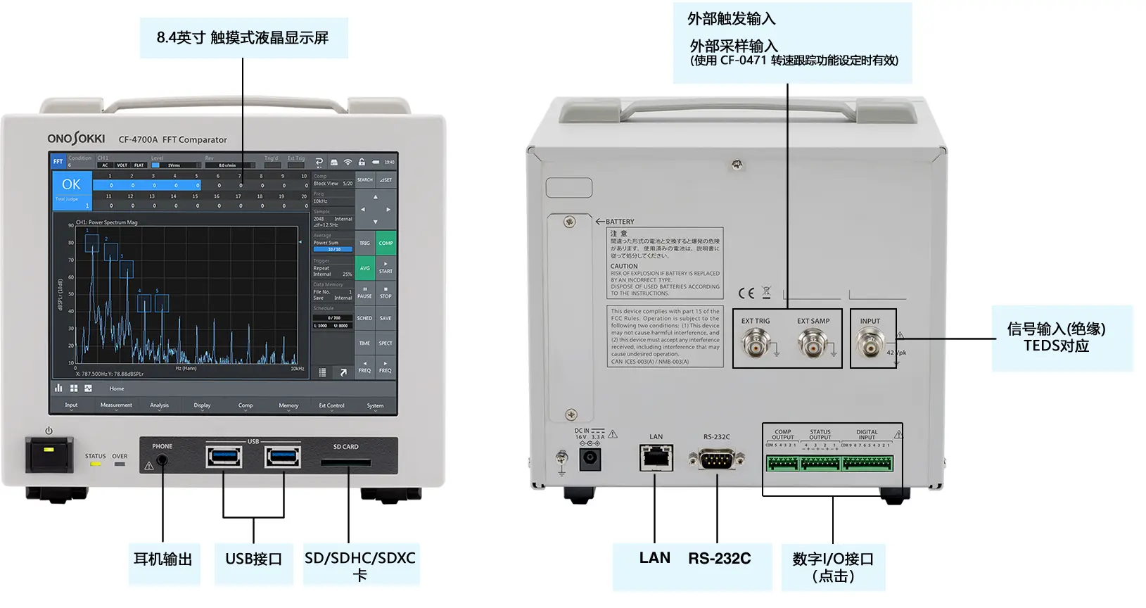 CF-4700A FFT分析比较仪是通过噪声与振动的频谱分析,可用于生产线上进行产品精密品质检查的测量仪器。搭载了本公司长年累计的FFT频率分析处理技术,通过检测特定的频率成分等进行产品的合否判定。 在现有机型CF-4500 的频率成分的大小和波形判定功能之外,增加变动成分检测功能,用于检测出周期变动的声音和振动的变动量。该功能对声音和振动的周期性变动量进行判定(而不是根据声音和振动的程度)。在判定由电机等机器运转时发生的浊度声及颤振引起的异音及振动时,通过特定频带的变动量大小进行判定是有效的方法。此外,该功能还包括带通滤波器,用于轴承的振动分析监控的包络线处理,以及监听功能(耳机输出)等将振动状态的可听化,可由听觉进行确认。