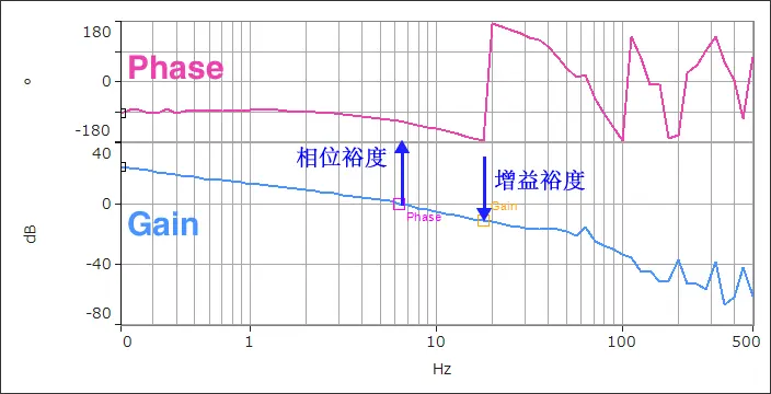测量结果的表现形式 可自动搜索增益裕度与相位裕度。