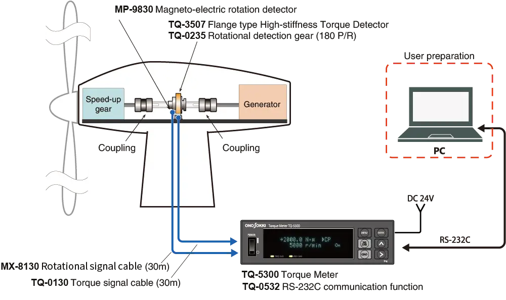 - In this application, rotational power (torque) enables the measurement and monitoring of energy efficiency, which varies with angle or material of blades for wind power generator.