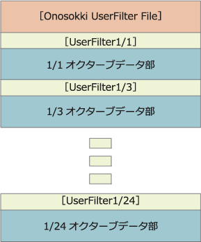 1つのファイルに1/1,1/3,1/6,1/12,1/24オクーブバンド分のフィルターを記入します。