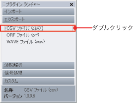 プラグインランチャーの[エクスポート]タブから、エクスポートするファイルの出力形式をダブルクリックします。