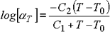 C1 、C2 は定数であり、前項で求めたシフトファクター αT と [ T − T0 ] との関係と一致するように選ぶ。
