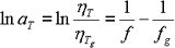 これは分子論的立場から粘性率 η と自由体積の関係を示す。f は自由体積分率。 B はほぼ 1 である。このとき、Doolittle の式は以下のようになる。