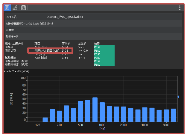 ※Overall(A)は、解析周波数範囲の音圧レベルの総和であり、算出においては、周波数重み付け特性Aを適用したものです。