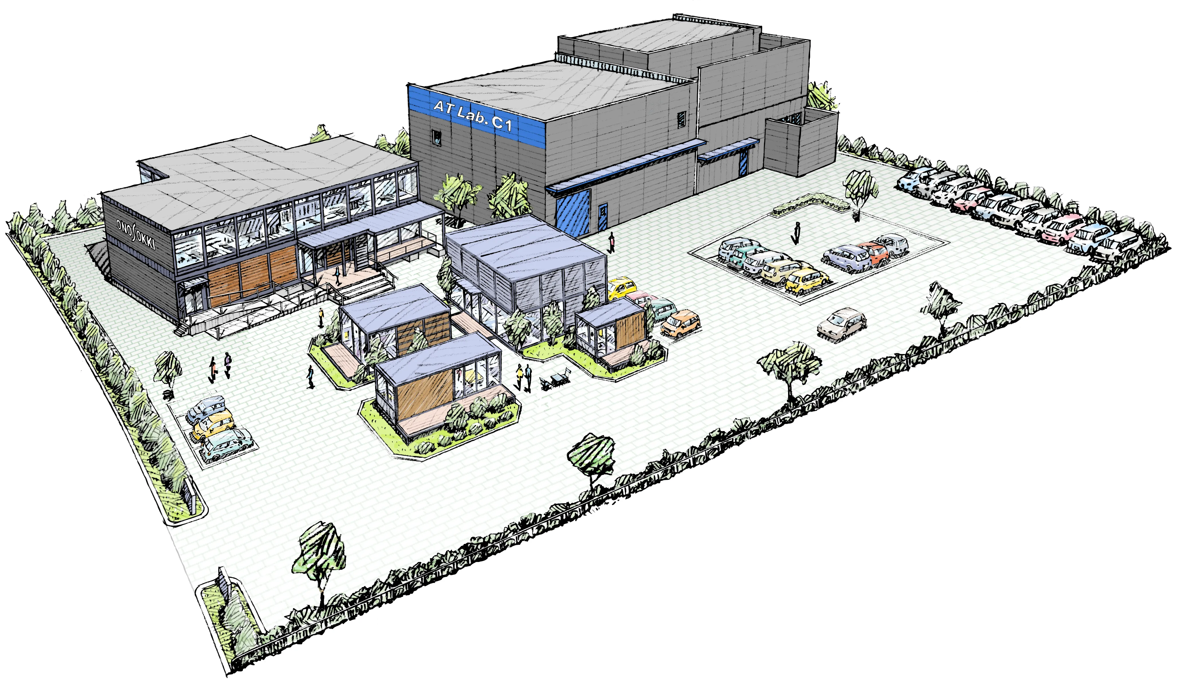概要:当社モデルべース開発の推進にあたり、国内自動車産業の集積地である中部エリアでの、顧客との密なコミュニケーションは必須と考えています。地域との連携、つながりを重視し、2027年の稼働後は共創パートナーを募集予定。共創パートナーには、本館と同じ構造の専用ユニットハウス群を使用していただく予定です。