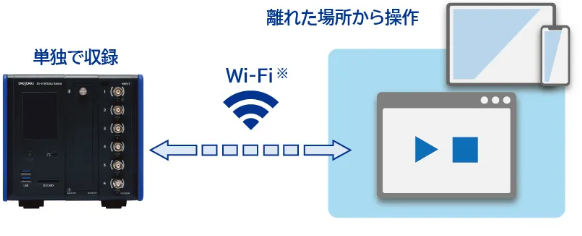 機材のスペースが充分にとりづらい車載計測やPCの操作ができない場所での計測には、単独収録機能が有効です。あらかじめO-Solutionで用意した条件ファイルをDS-5000にインポートすることで、PCレスのデータ収録が可能になりました。